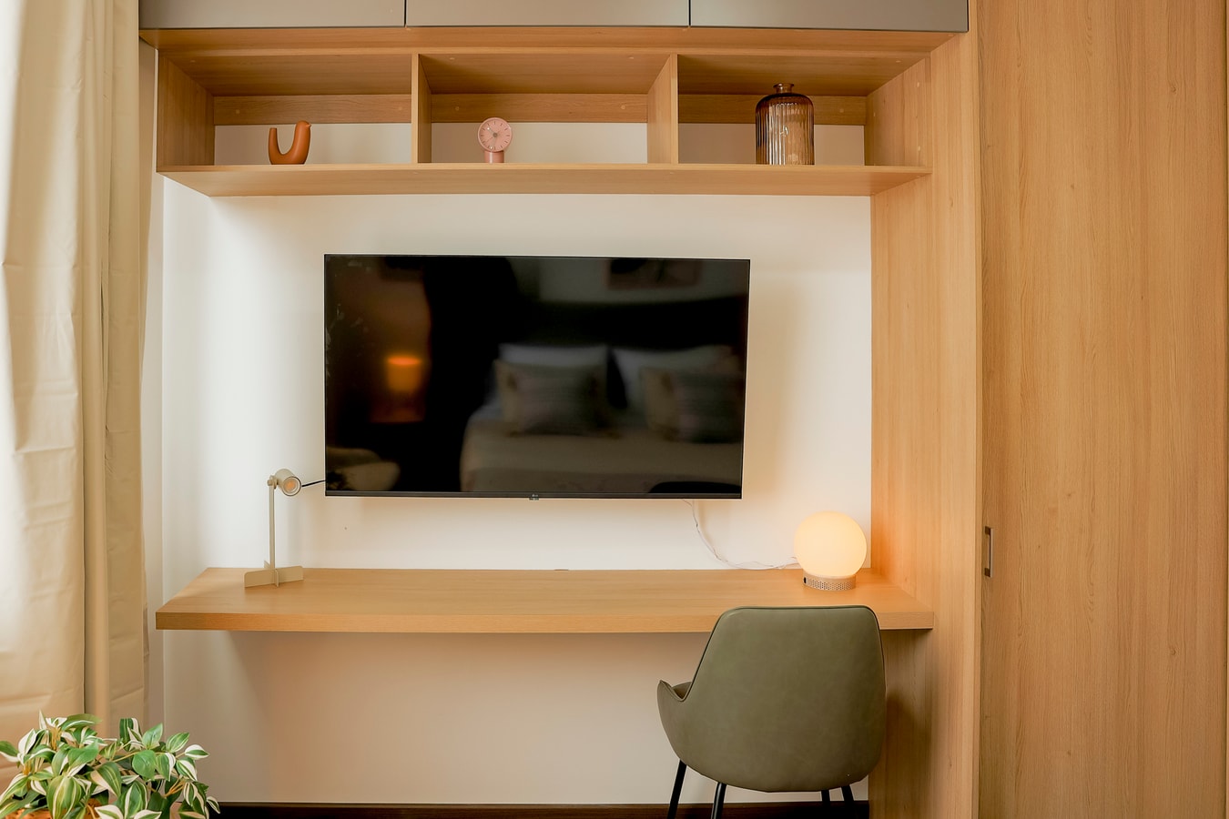 Este acogedor estudio de 20 metros cuadrados es la opción perfecta para disfrutar de una estancia cómoda y moderna. Equipado con una cama queen, un escritorio ideal para teletrabajo, y una cocina completamente equipada con vitrocerámica, hervidor, cafetera, AirFryer, tostadora, frigorífico y menaje necesario. La habitación, iluminada por un gran ventanal con velo y cortina blackout, ofrece vistas impresionantes a la montaña y garantiza un ambiente luminoso y relajante.